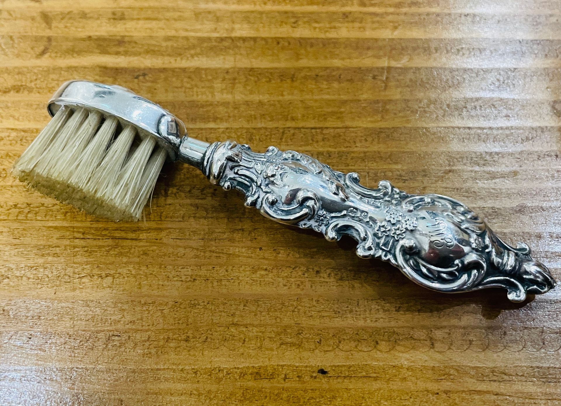 After more than 10 years of buying and selling antiques it fascinates me that I can still come across things that I’ve never seen before and this happened recently when I bought a small silver brush. It measures just over 3 inches long and is hallmarked sterling silver. From the hallmark I can tell that it was made in Birmingham in 1904 by the makers Adie & Lovekin.