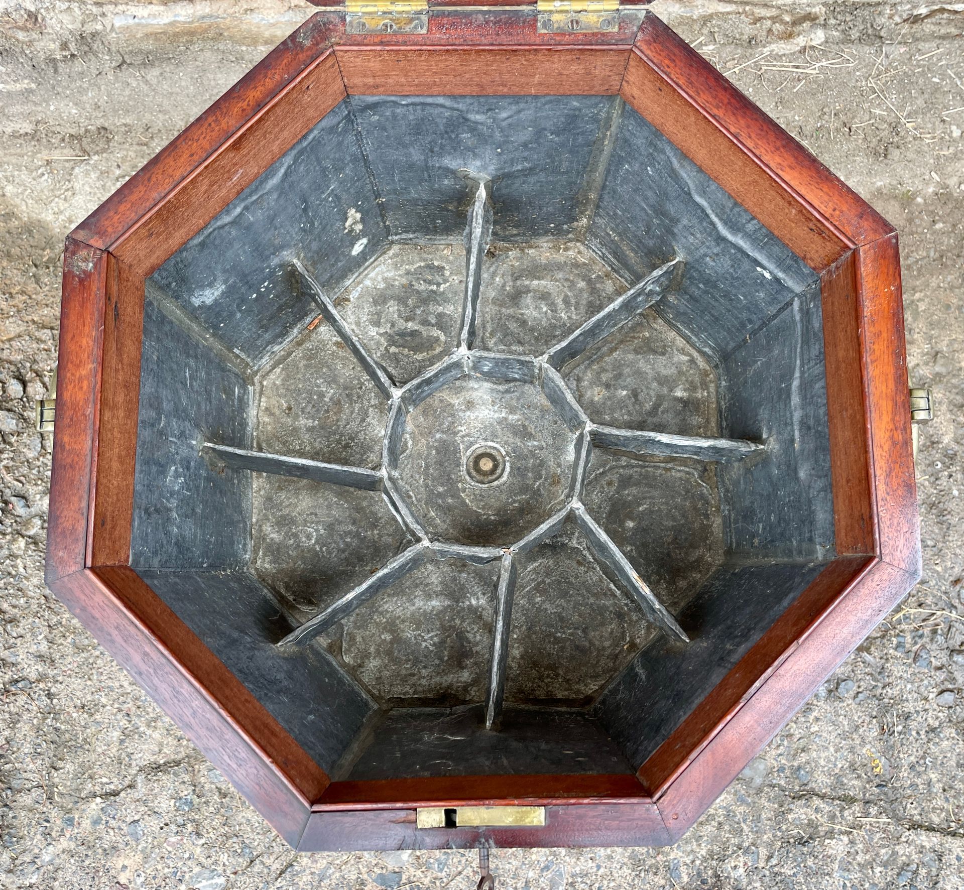 This Cellarette is beautifully made from mahogany and has a lead lining with sections for each bottle. The Georgians would have filled it with ice and this lead lining would have kept the contents insulated and chilled as well as protecting the mahogany outer. The wheels on the base allowed it to be easily moved from one room to another making it convenient to serve drinks to guests - the Georgians really did think of everything!